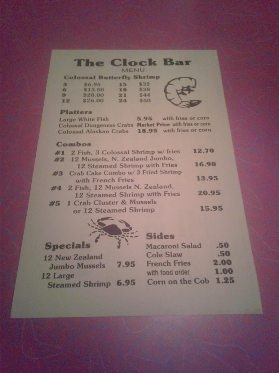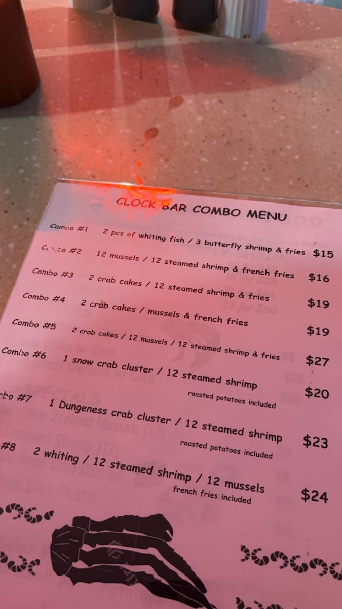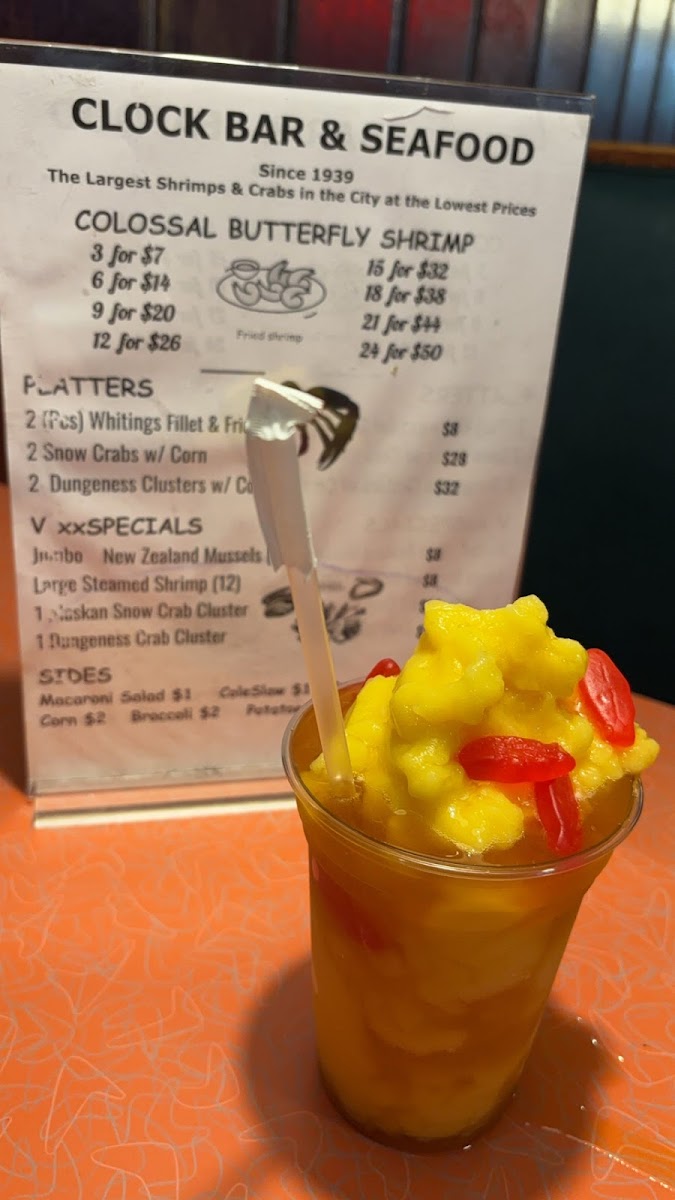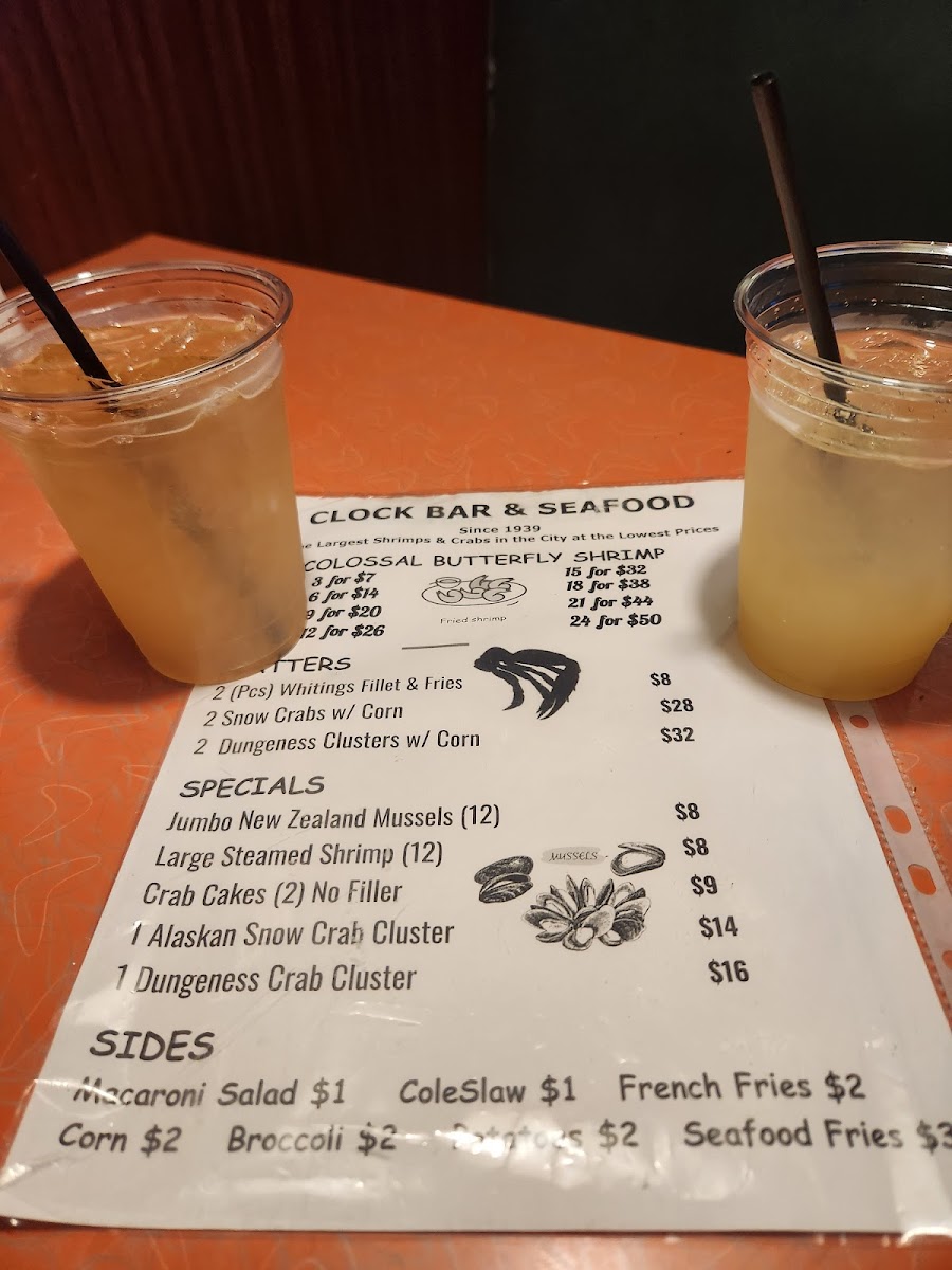 - Seafood Platters: Clock Bar features enticing platters like 2 Clusters of Colossal Dungeness or Snow Crabs for just $28, and Fried Whitings for $8, promising generous portions and rich flavors that cater to the seafood enthusiast.